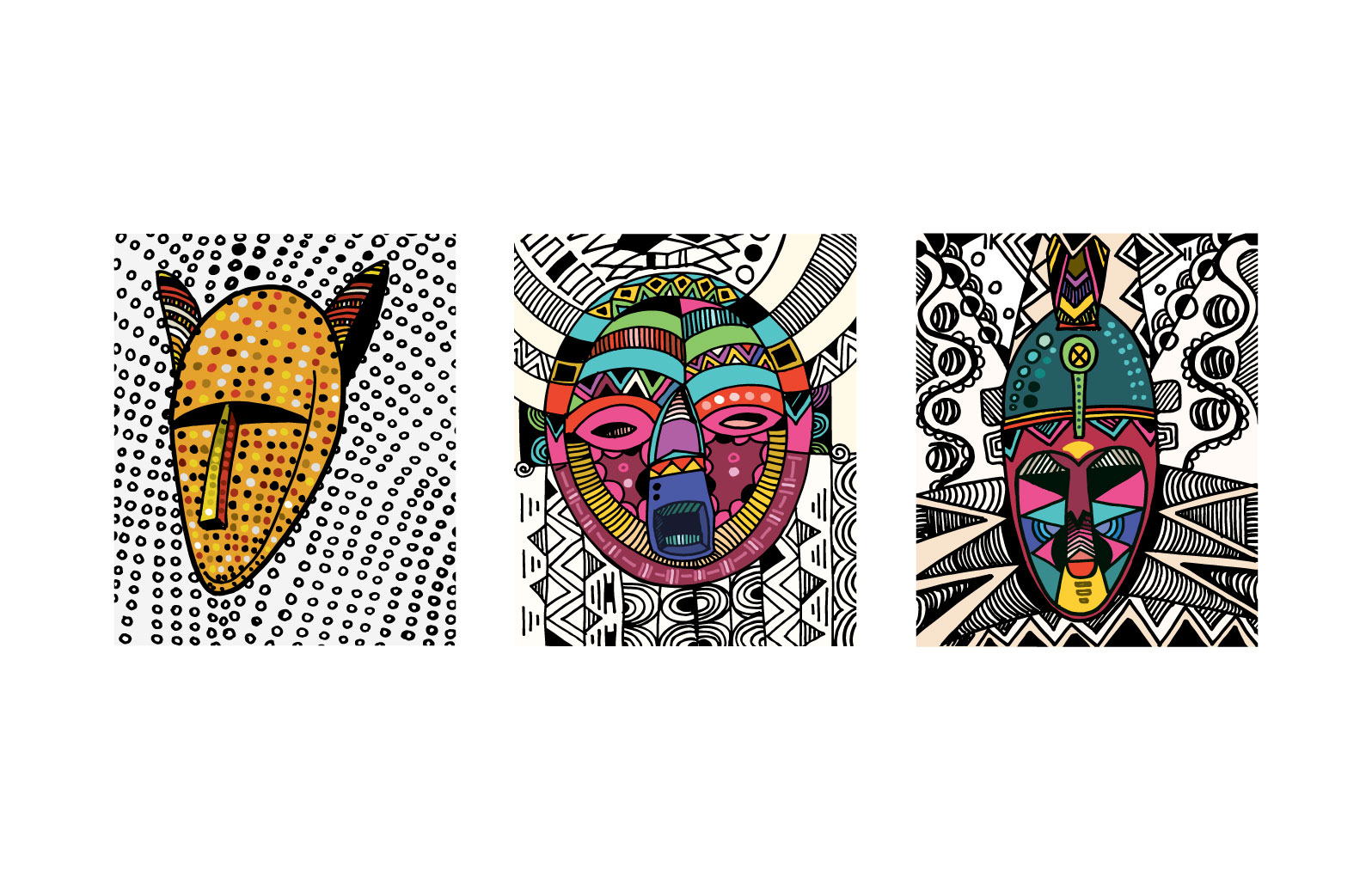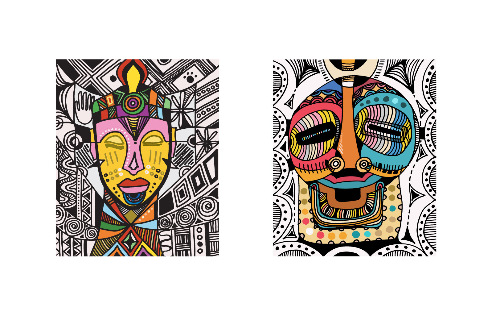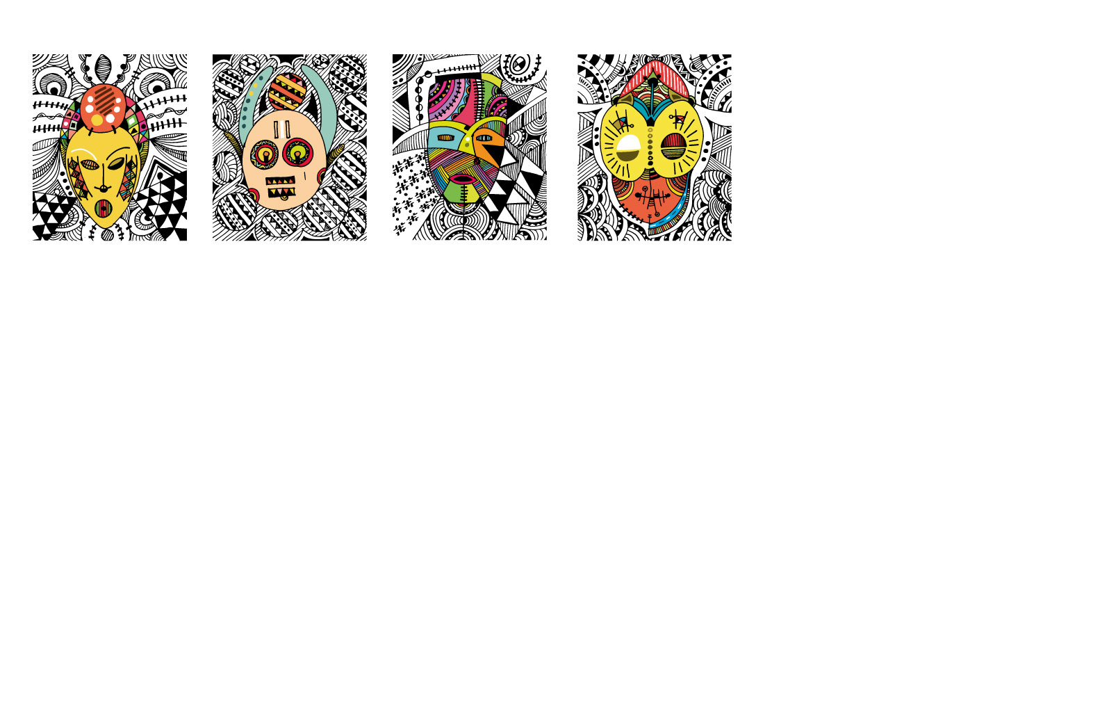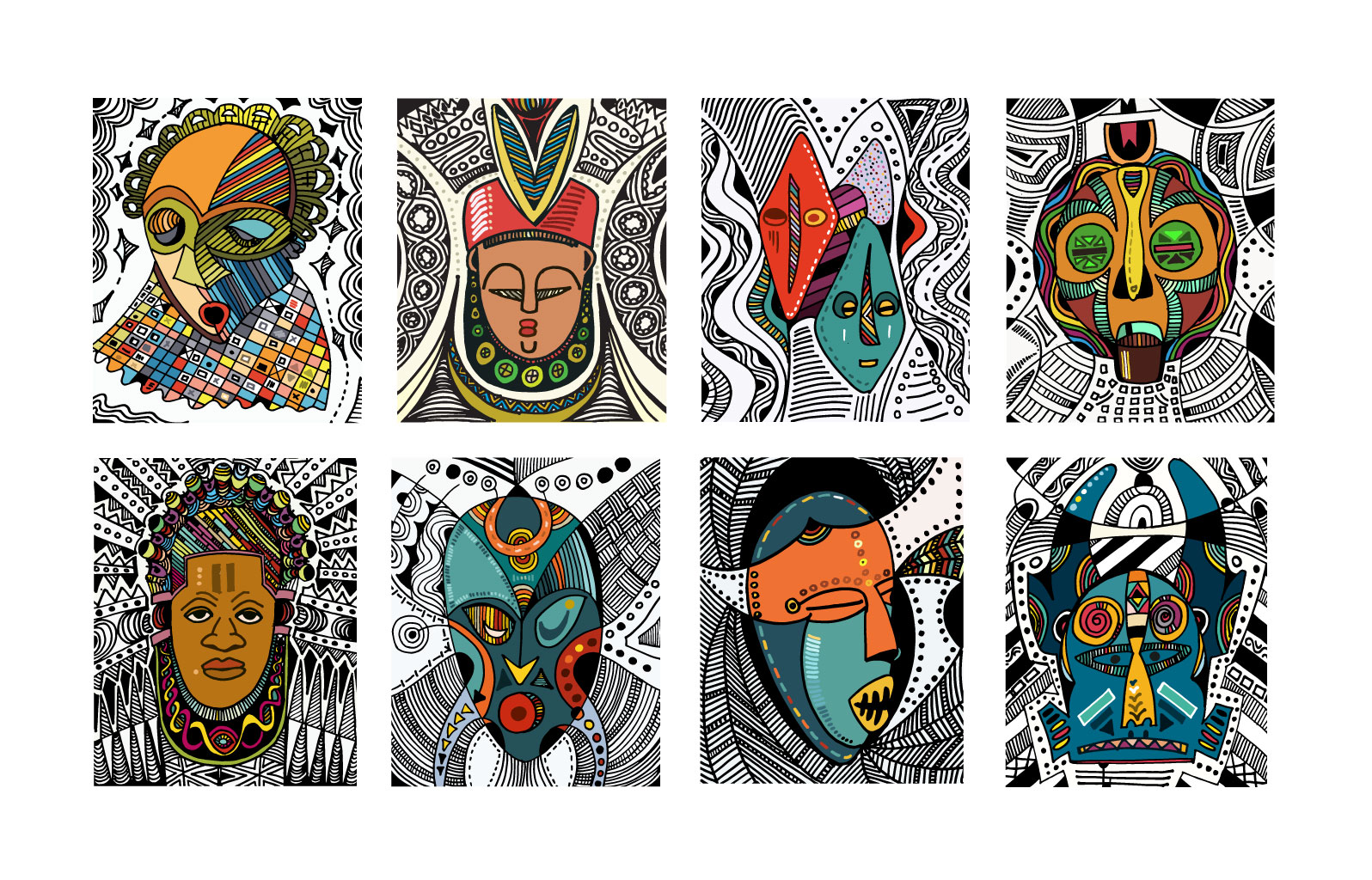 Masked, my outing body of work is a visual expression of lines and colours dipped from my moments of fear and despair, hopelessness and hope, fate and faith couched in revolving layers of subliminal performance. It is a renaissance of my art expression that has always been part of my composition and artistic mandate. It is the showing of a collaborative outcome created for experiential learning enabled and magnified by digital platforms for Africans and Diaspora Africa. Drawing from the mask-wearing culture of Africa, this collection was created by synthesizing free hand and digital tools, resulting in 100 expressions of illustrations reminiscent of the age long curvilinear Uli art form.