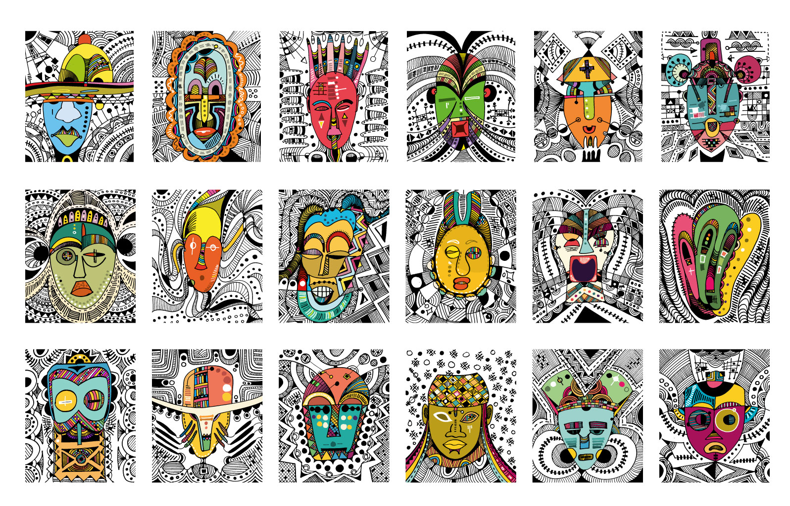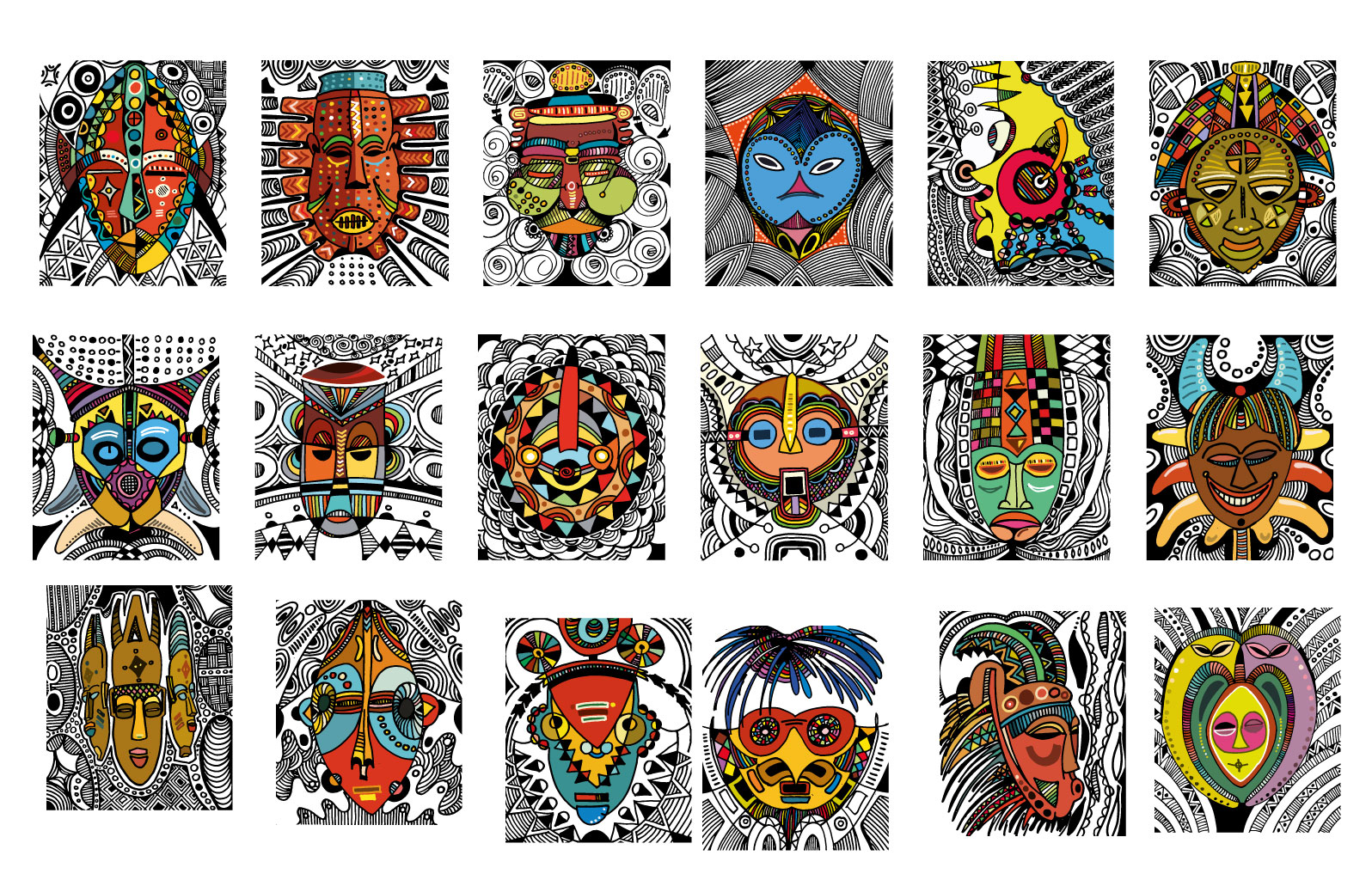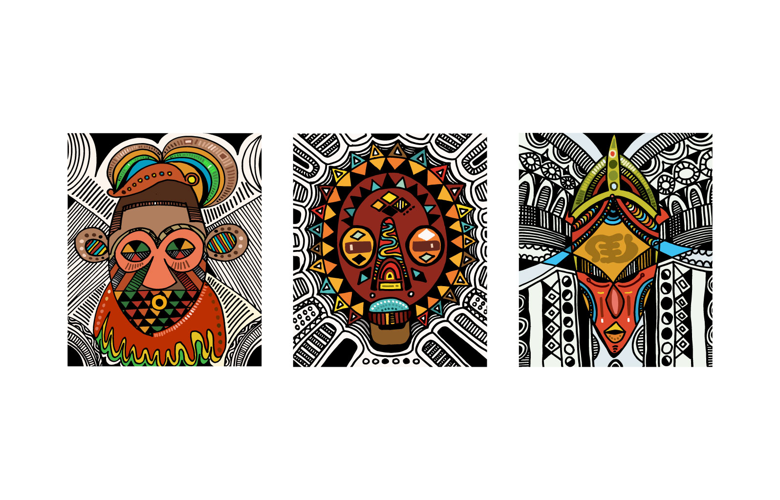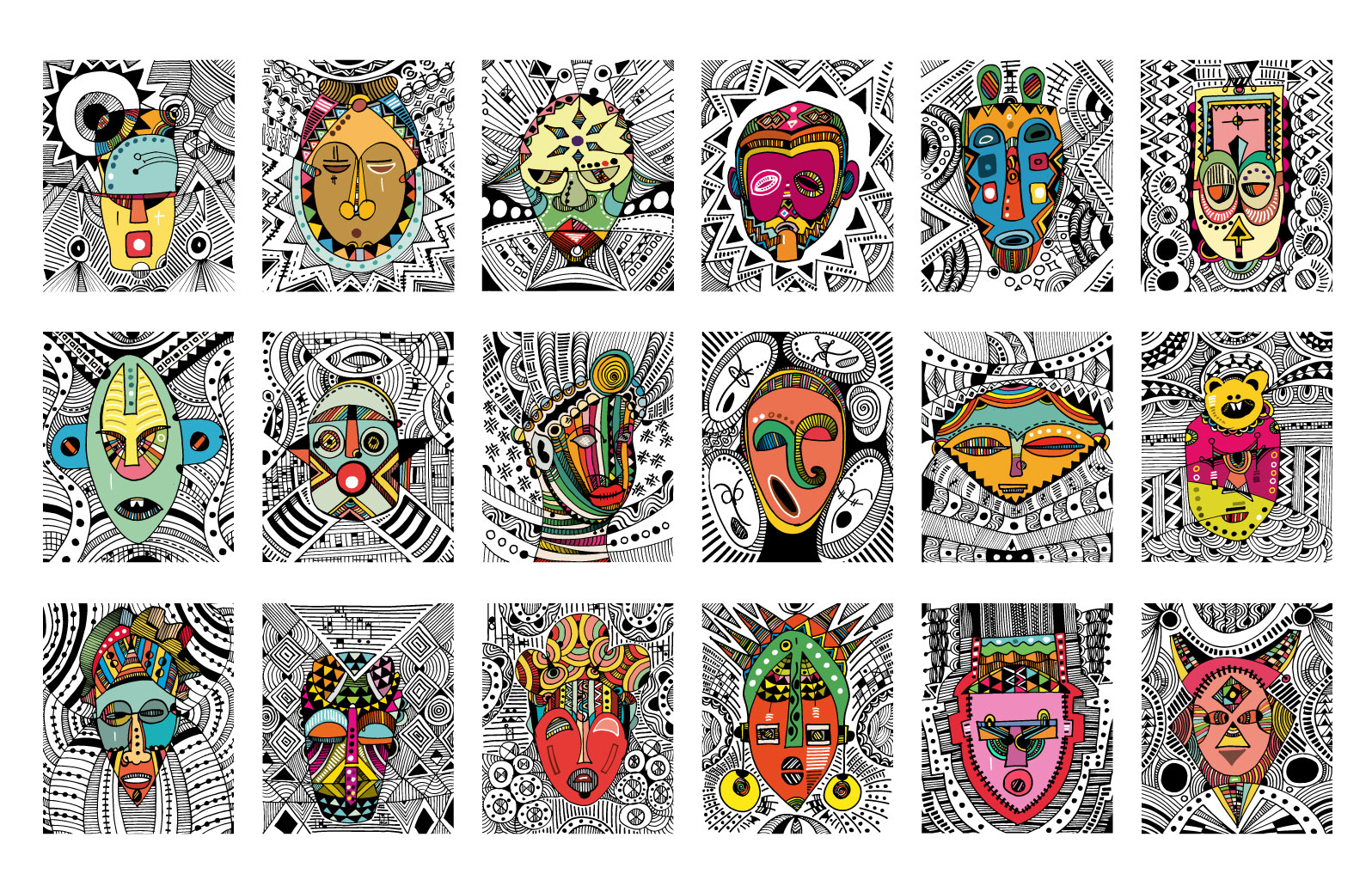 Masked, my outing body of work is a visual expression of lines and colours dipped from my moments of fear and despair, hopelessness and hope, fate and faith couched in revolving layers of subliminal performance. It is a renaissance of my art expression that has always been part of my composition and artistic mandate. It is the showing of a collaborative outcome created for experiential learning enabled and magnified by digital platforms for Africans and Diaspora Africa. Drawing from the mask-wearing culture of Africa, this collection was created by synthesizing free hand and digital tools, resulting in 100 expressions of illustrations reminiscent of the age long curvilinear Uli art form.